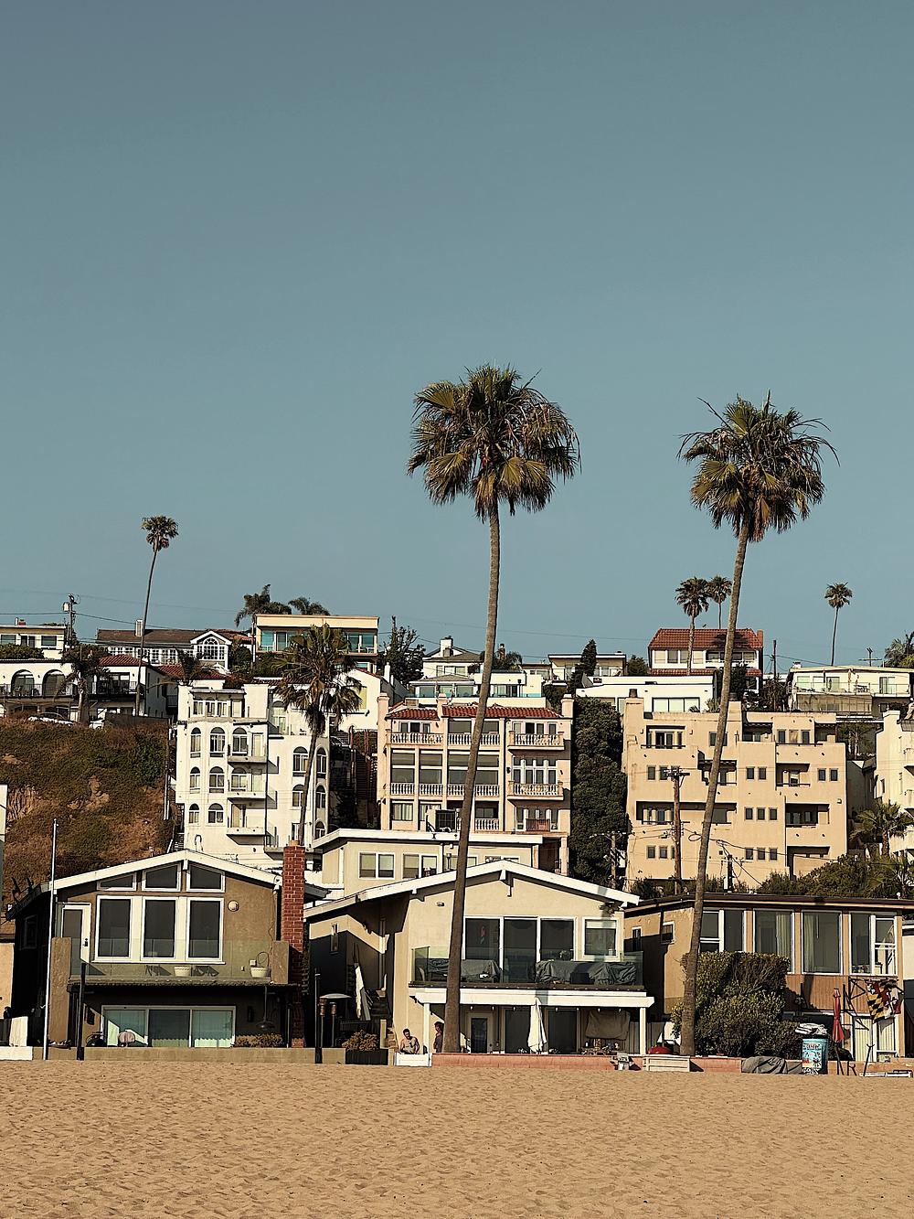Sunset views every night. July 2024, Playa del Rey, CA. | beach, west coast, beach house, home, sand, palm trees, sunny day, sun drenched, blue sky, warm tones, vacation, Los Angeles, California wall art